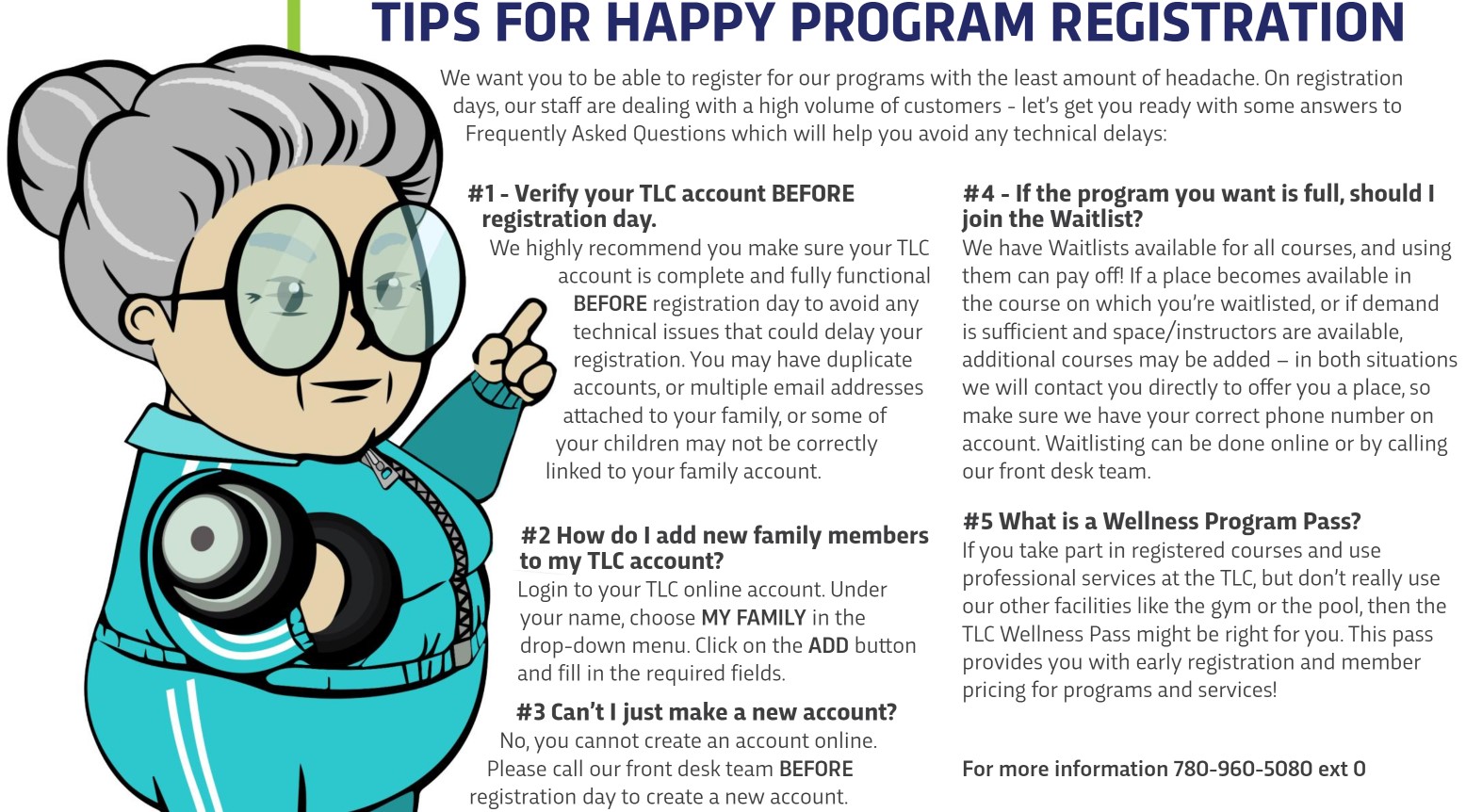 We want you to be able to register for our programs with the least amount of headache. On registration days, our staff are dealing with a high volume of customers - let’s get you ready with some answers to Frequently Asked Questions, which will help you avoid any technical delays: